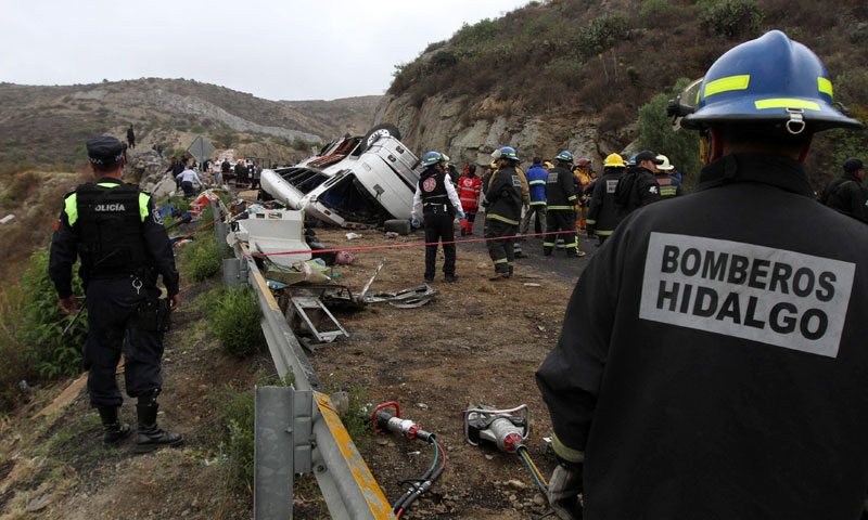 State attorney general's spokesman Fernando Hidalgo said the accident happened Sunday afternoon as a group of tourists was returning to Mexico City from a weekend trip to the thermal baths in the town of Santa Maria Amajac.